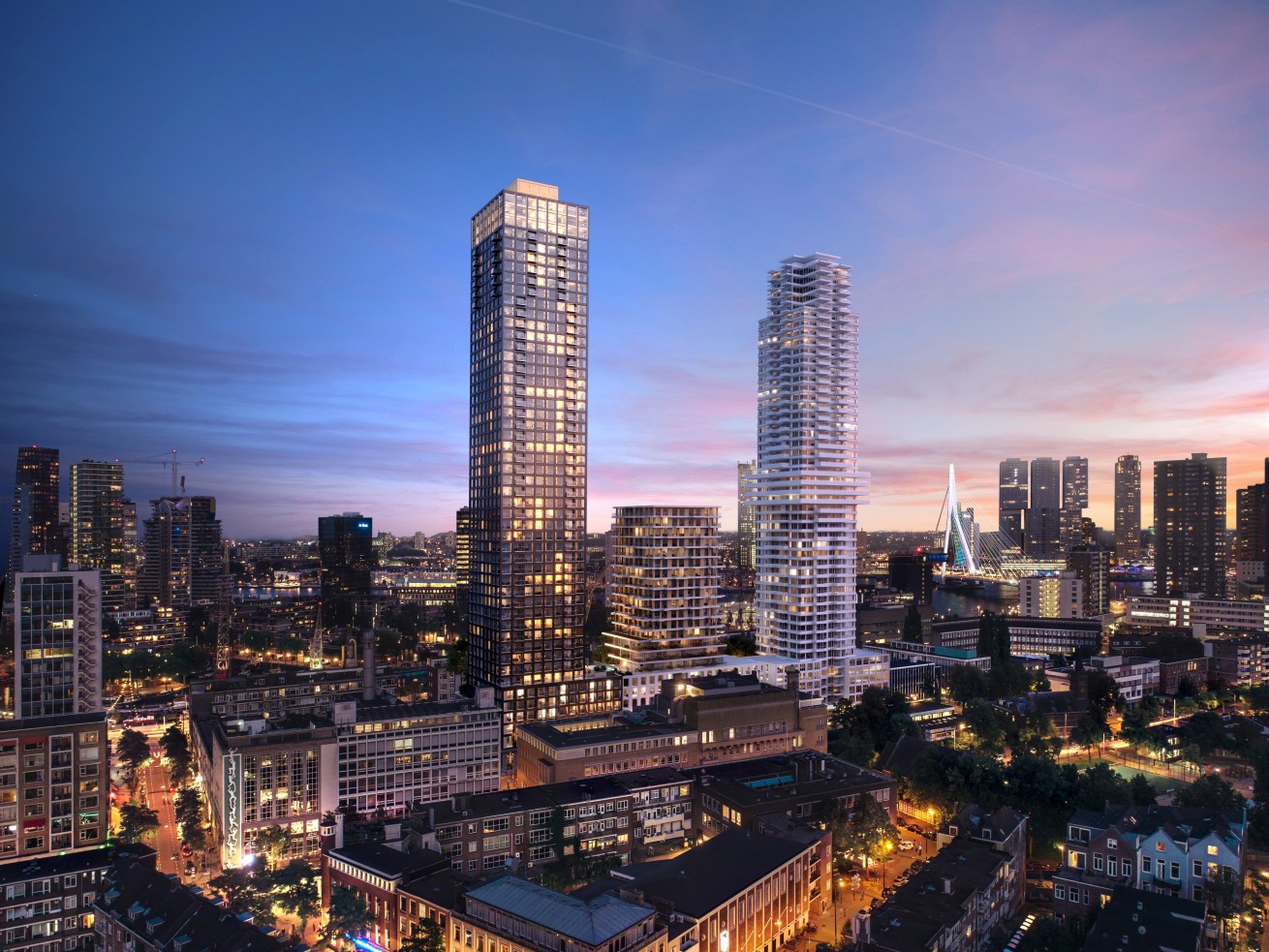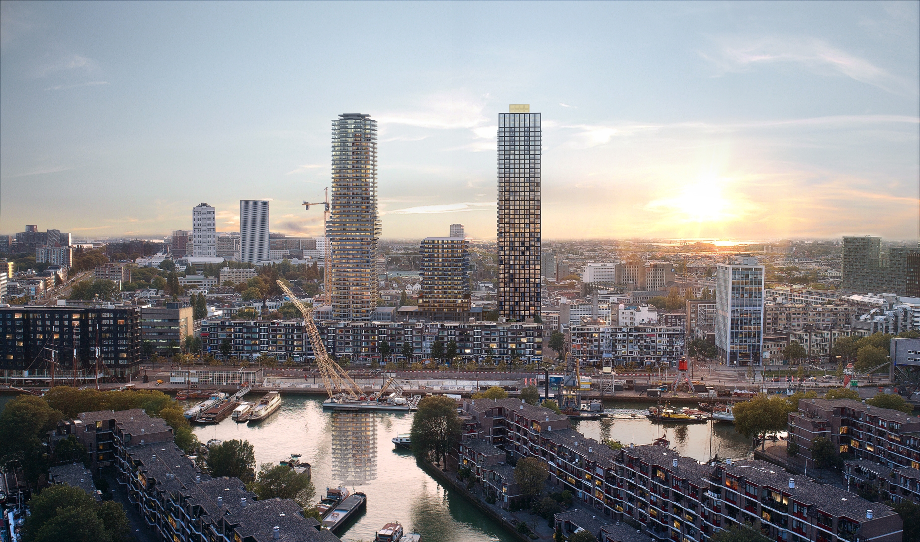 At 159 meters tall, The BaanTower offers stunning city views. The 427 rental units are suitable for all types of households and range from compact studios to single-family homes and penthouses. Over 30% of the units are in the mid-range segment. The vast majority of apartments have private outdoor space, in addition to the shared roof garden.